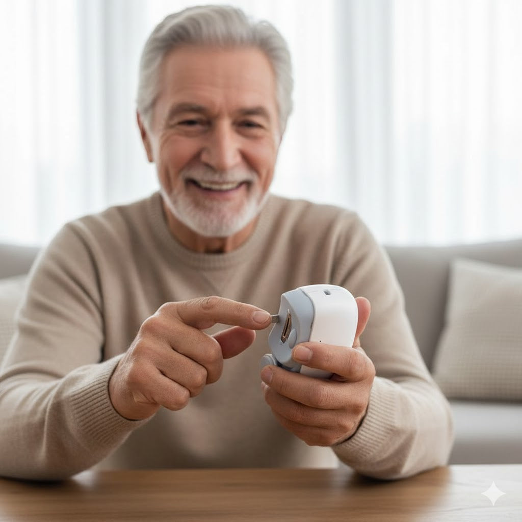 Das ergonomische Design liegt angenehm in der Hand – perfekt für Menschen mit eingeschränkter Beweglichkeit oder nachlassender Kraft in den Fingern.